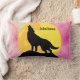 Silhouette of a wolf on top of a mountain howling at the moon with multicolored background it can also be personalized with any name you would like to give this pillow too.
