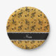 Personalized name yellow glitter music notes paper plates