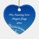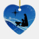 Personalized Beautiful Silhouette Nativity Scene Christmas Ornament in shades of blue and white with star filled skies and snow flakes._