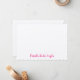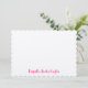 Personalized Linen Flat Note Card with hot pink calligraphy script typography located in the lower right hand corner. The placement of the name gives this whimsical flat note a contemporary look. This is a wonderful note for thank you notes as well as just keeping in touch. Consider this as a gift for your bridesmaids, your favorite bride, or for the graduate in your life. Just personalize with the name of your choice. Handwritten notes are so personal!
