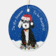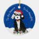 Cute Personalized Black and White Cartoon Bernedoodle Puppy wearing custom Santa hat, red bow with jingle bells, tangled in christmas lights. Festive "Tis the Season To be Naughty" - holiday blue snowy background. Add your bernedoodle's name to this adorable holiday ornament!