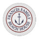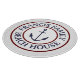 Personalized nautical anchor logo cutting board. Navy blue and maroon circle emblem with classic block text.