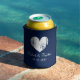 Personalized nautical anchor wedding can coolers with cute heart. Navy blue color. Vintage design monogrammed with name initial letters of bride and groom / newly weds couple. Weathered love symbol with date of marriage and name of bride and groom. Make your own wedding favor / souvenir for guests at your party. Romantic theme beverage holder design. Perfect for alcoholic drinks like beer. Also available for bottles. Elegant script typography. Change the quantity to get the cheapest price per cooler. Maritime sailing / beach theme. Vintage Boat / ship anchor design with Just Married slogan. Anchors aweigh!