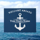 Create the perfect nautical entrance with this Personalized Nautical Boat Name Doormat, featuring a striking navy blue and white design with a bold anchor and "Welcome Aboard" message. Customize it with your boat’s name for a personal touch that’s both stylish and functional. This weather-resistant doormat is ideal for outdoor use on boats, beach houses, or nautical-themed homes, adding coastal charm while keeping your entryway clean