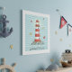 Dive into a delightful underwater adventure with this charming, personalized nautical pattern. Against a soft blue, wavy stripe background, adorable hand-drawn illustrations of a classic red and white lighthouse and starfish create a fun design and add the perfect touch of coastal whimsy to a baby nursery, toddler bedroom, playroom, or bathroom. The simple, cheerful art style and soothing colors evoke the joy of the ocean and make it an ideal choice for creating a bright, breezy maritime space. Part of our coordinated 'Nautical Kids’ Room' collection. Note: design adapted from generative content.
