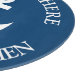 Personalized nautical navy blue and white boat anchor icon round glass cutting board. Cute kitchen accessories for friends and family. Fun dinner party gift idea for chef cook sailor wife, mom, dad, mother, sister, brother, aunt, grandma, husband, wife etc. Unique party supplies for family reunion or gathering.