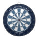 Custom text dartboard with a nautical color scheme featuring a dark navy blue frame and 2 shades of blue on the dartboard with an off-white mix.
