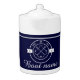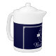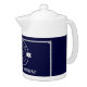 Personalized Nautical Teapot with your text or name and boat location. Marine design with nautical symbols. Navy Blue color.