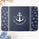 Create a unique personalized nautical navy blue and white bath mat that features a monogrammed with family name and year boat anchor, seashells, and seaweed pattern. The template makes it easy to type your text. This stylish bathroom decor is perfect for a beach house, lake house, yacht, or boat.