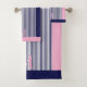 Create a personalized oasis in your bathroom with our monogram bath towel set. The sleek and minimalist design in navy blue and light pink on a white background adds a touch of modern coastal elegance. Personalize it with your initials and create a sophisticated haven in your home. This also makes for the perfect personalized vacation gift for a loved one.