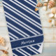 Personalized Navy Blue and White Stripes Beach Towel