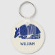 Keep your key secure or add a fun dangler to your backpack with this personalized keychain featuring an illustration of an armadillo in navy blue against a cream colored background. Makes a fun small gift for fans of armadillos.