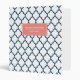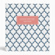 A modern navy blue and coral design featuring a navy blue and white Moroccan quatrefoil pattern. Personalize it with your name and title or other text in white on a double-bordered coral rectangle on the front cover, and white text of your choice on a coral background on the spine.