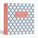 Personalized Navy Blue Coral Quatrefoil Pattern 3 Ring Binder