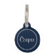 Simple personalized navy blue dog tag with owner's contact details on the back. Matching pet accessories are available in my shop - dog collar, leash, bed, and bowl.