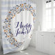 Elevate your bathroom décor with this charming and personalized shower curtain. The design features a delicate floral wreath in soft orange and white hues, framed by navy blue stripes. Personalize it with a couple's names in elegant script for a unique and stylish touch. Made of high-quality, water-resistant fabric, this shower curtain is both stylish and functional.