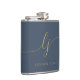 Personalized Calligraphy Script Signature Name Navy Blue Gold Bachelorette Flask
