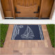 This navy blue nautical doormat is easy to personalize with your Family name. The design features a sailboat illustration, stripes and the Life is Better at the Lake saying.