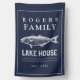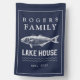 Dark blue lake house flag featuring a rustic trout image and bold serif typography. Personalize this design with your family name and year established. Further customize this design by selecting the "customize further" link. -p