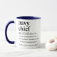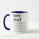 The Personalized Navy Chief Mug features a humorous definition highlighting a chief's exceptional problem-solving skills. Ideal for honoring current or retired Navy chiefs, this custom gift can be personalized with a name, making it a unique keepsake. Perfect for various occasions such as promotions, retirements, birthdays, or military appreciation, it celebrates the legendary status and skills of a Navy chief. The mug is an excellent gift for family, friends, or anyone who values military humor and recognizes service.