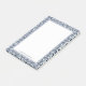 Coastal chic post-it notes feature an intricately patterned geometric border in shades of blue, inspired by traditional Spanish and Portuguese azulejo tiles. Personalize with your name, business name, monogram or choice of custom text along the bottom.