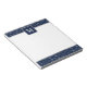 Celebrate the festive season with this personalized navy blue Christmas notepad, designed with classic holiday icons like Santa hats, Christmas trees, gifts, and snowflakes in white. The deep navy background paired with silver accents adds a sophisticated touch to your holiday stationery. The customizable monogram at the top makes it a perfect personal gift or a stylish addition to your holiday desk.