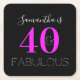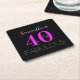 Personalized Neon Pink 40th Birthday Party Square Paper Coaster