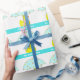 Cute baby boy or baby girl gift wrap or baby shower decoration idea featuring cute rubber duck with an umbrella illustration. To customize, edit text to add newborn's name.