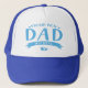 Personalized New Dad Blue Trucker Hat with blue hearts and blue footprints. The perfect gift for a proud new dad.