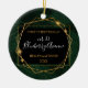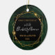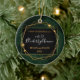 Personalized New Home ornament with an elegant gold geometric frame on a black and tropical background. Update with your names and date, it's a template!