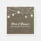 Create your own rustic burlap look, mason jar theme housewarming party paper napkins- Personalized names in modern, handwritten look lettering are printed above 'Housewarming Party' in whimsical style. Decorated at top with hanging, rustic country mason jar lights and twinkle lights. Against vintage, shabby burlap look background. Country chic housewarming party paper napkins for rustic housewarming party, country theme housewarming, mason jar theme party, outdoor housewarming party, farmhouse housewarming, etc. Visit our Zazzle.com/angela65 shop for coordinating housewarming party invitations and more rustic mason jar paper napkins and decor.
