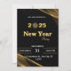 The dark, elegant color scheme combined with the festive golden accents creates a sense of sophistication and glamour, setting the tone for an exciting New Year's party. This design would be highly customizable, allowing the host to personalize the event location, and any other relevant details to create a unique and memorable invitation for their guests.