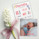 Custom birth information announcement card with all your little baby's birth details, and a photo on the other side. A perfect family newborn announcement card for you to share the big news.