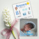 Custom birth information announcement card with all your little baby's birth details, and a photo on the other side. A perfect family newborn announcement card for you to share the big news.