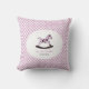 Pink and brown rocking horse pillow, personalized newborn pillow