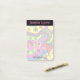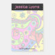 Personalized Notes with bright colored swirls, hearts and flowers that have a faded appearance so you can easily write on them. A place for you to put your name at the top - shown in hot pink with a white highlight giving it a neon look on a black border. URL at the bottom can also be customized. This is a great gift for your co-worker, boss or for someone starting their first job.