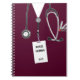 Creative nurse notebook featuring medical themed maroon hospital scrubs and ID badge design. Edit text to add nurse's name and the year.