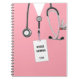 Creative nurse notebook featuring funny pink hospital scrubs and ID badge design. Edit text to add nurse's name and the year.