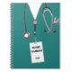 Creative nurse notebook featuring medical-themed hospital scrubs and ID badge design. Edit text to add nurse's name and the year.