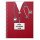 Creative nurse notebook featuring red hospital scrubs, stethoscope and funny Swiss army knife. To personalize edit text to add name and medical credentials.