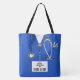 Unique medical "nurse purse" featuring creative blue hospital scrubs and a stethoscope. Edit text to add name of your favorite nurse or nursing student.