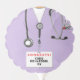 Creative nursing school graduation keepsake gift and grad party decor, featuring lavender hospital scrubs and a stethoscope. Edit text to add nurse's name.