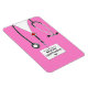 Creative nursing school graduation gift card template featuring pink hospital scrubs. To personalize, edit text to add name of nurse grad.