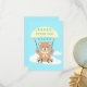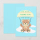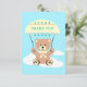 Cute teddy bear gliding on parachute with fluffy clouds on a light blue sky. Personalize the card with custom text