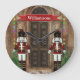 A beautiful holiday art wall clock that you can personalize with your family name on top! Clock features a lovely warm home for the holidays scene. A decorated front door with two large Nutcracker men on each side with colorful lights around the door trim. Top of the clock has a wonderful red ribbon area for you to add your family name too! A great personalized keepsake addition to your home for the holidays or a touching gift for family and friends! For more holiday or art wall clocks please visit our shop!