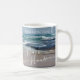 Add coastal style to your beach house with this personalized tea of coffee mug. The design features a one-of-a-kind photograph of the tranquil blue waves and soft sand of coastal Melbourne, Australia. The modern, white text is customizable so you can add your own family name.
