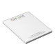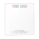 Personalize this notepad with your company logo or school logo and custom text. Custom branded notepads can advertise your business as corporate swag and office stationery. The size is 5.5 inch x 6 inch. No minimum order quantity and no setup fee.