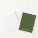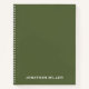 This personalized notebook features a classic white typography design on a solid olive green background. The name is elegantly placed in the lower thirds of the notebook cover. The notebook is perfect for jotting down notes, keeping a journal, or as a thoughtful gift for a friend or loved one.