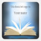Personalized Open Book Design Bookplate Sticker with customizable text.