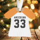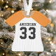 Celebrate your baseball star with this personalized orange and white pinstripe jersey ornament. Perfect for commemorating a special season, player, or team. Customize it with a name and number to create a unique keepsake.